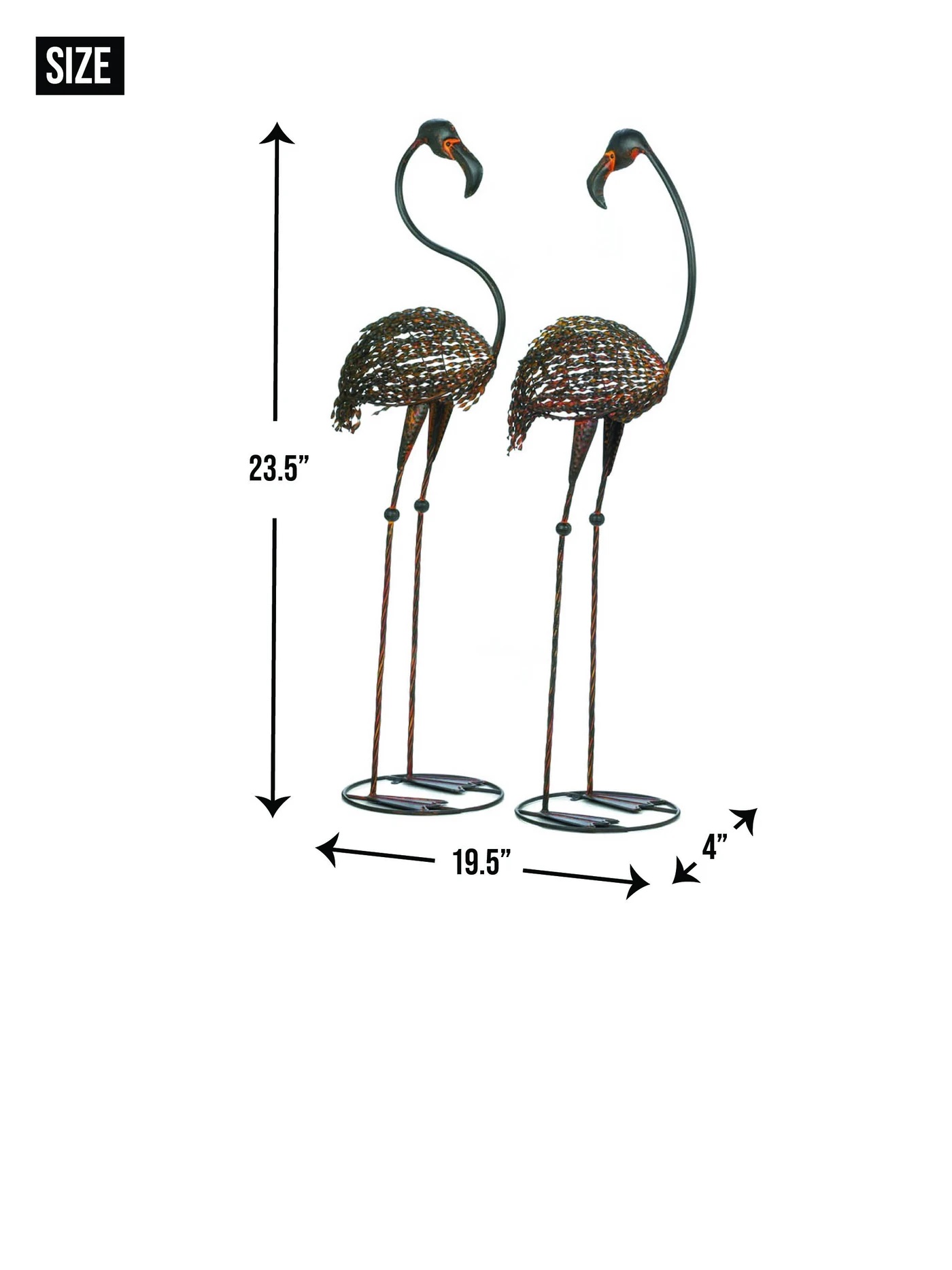 • Add some art to your garden or yard with this show-stopping pair of flamingos. This set of cast iron statues will add some whimsy and a dash of wild art to your outdoor living space.