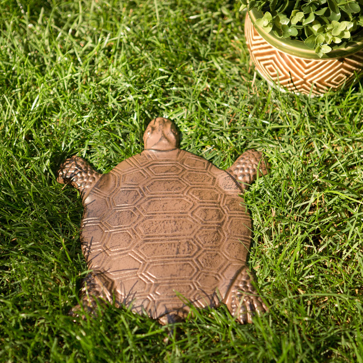 • This turtle stepping stone is just what your garden or yard needs! Beautifully detailed and cast from iron, it will be your favorite outdoor accent for years to come.
